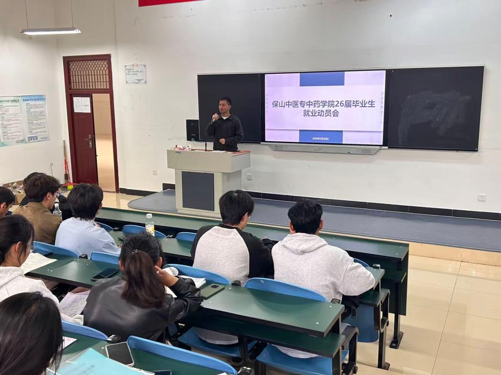 为深入贯彻落实高校毕业生就业工作部署,精准助力2026届毕业生平稳步入职场、实现高质量就业,2026年3月30日,学院分专业召开2026届毕业生就业动员大会。中药学专业专场由苏银春老师主持,药学专业专场由洪雪婷老师主持,苏银春、孟纯燕、杨喆、赵志恒四位老师分别作专题分享,为毕业生明晰就业方向、破解求职困惑、提振就业信心。